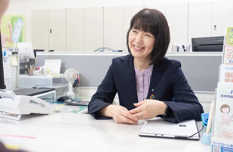 お客さまの様々なニーズにきめ細やかに対応します。来店されたお客さまのご相談を受けるだけではなく、訪問活動により事業の将来性や経営ビジョンなどをヒアリングし、総合的な判断をしていきます。